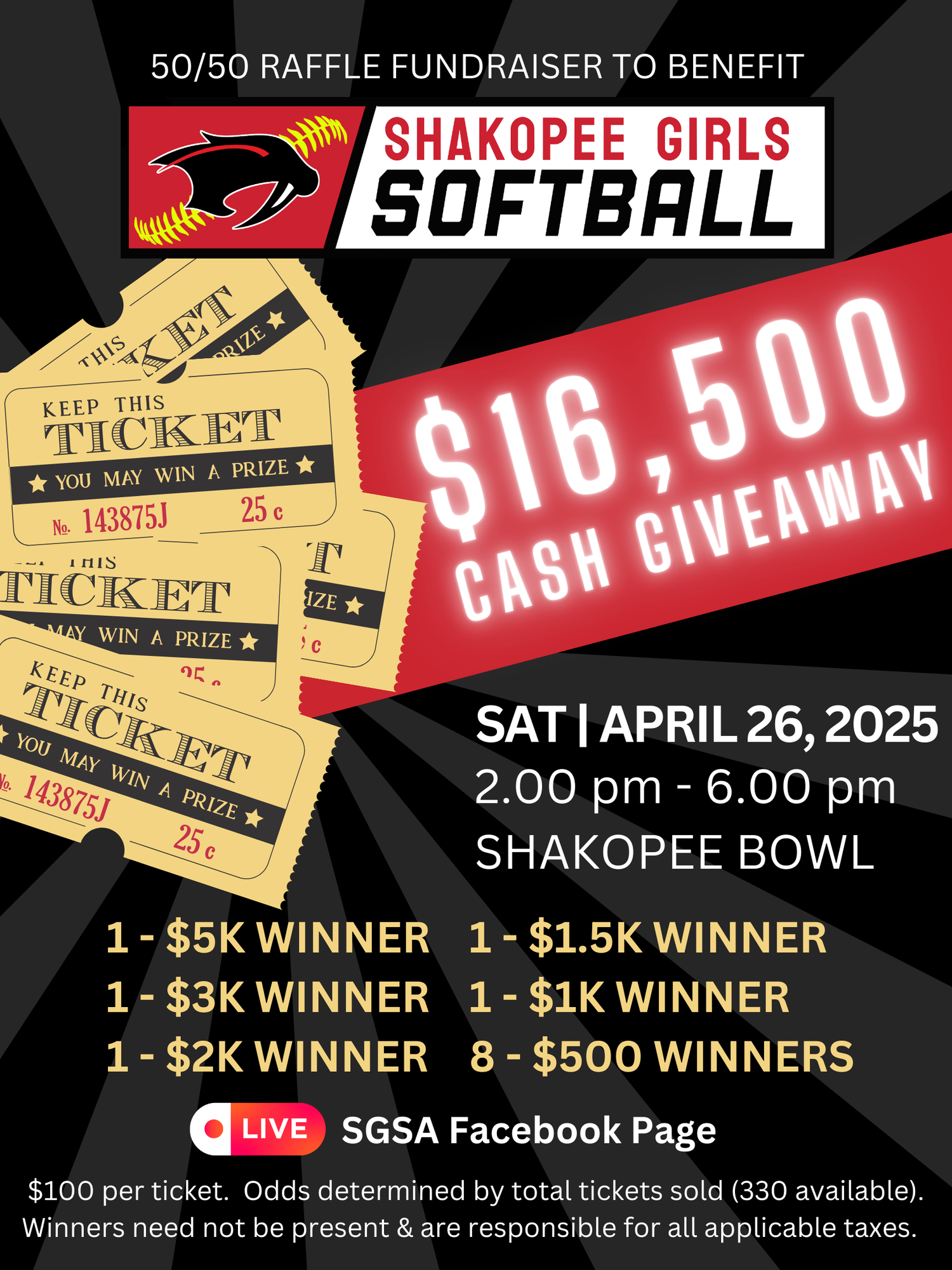 For more information on how to buy a raffle ticket, email shakopeegirlssoftball@gmail.com. You can also contact any SGSA board member to purchase.