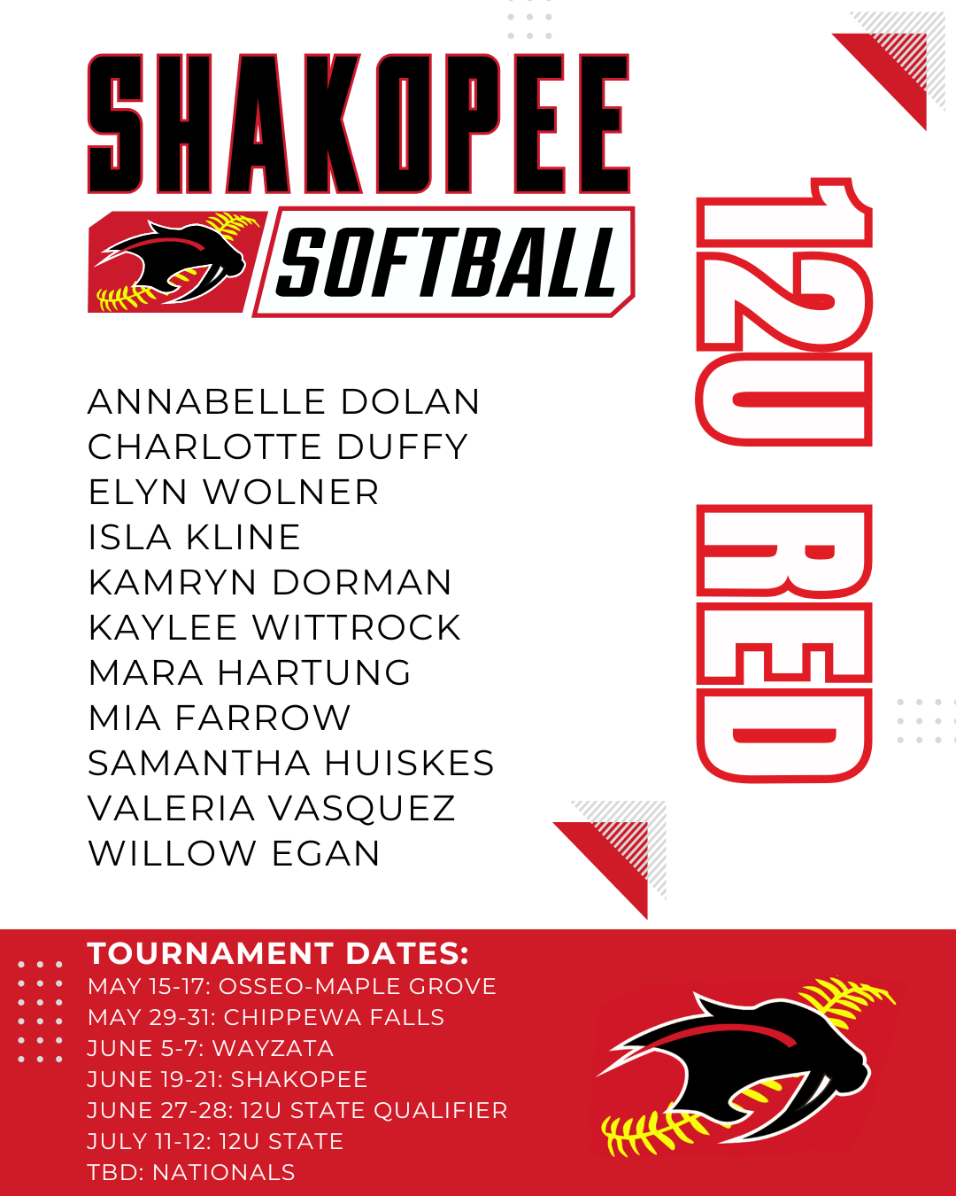 12U Spring 2026 Rosters